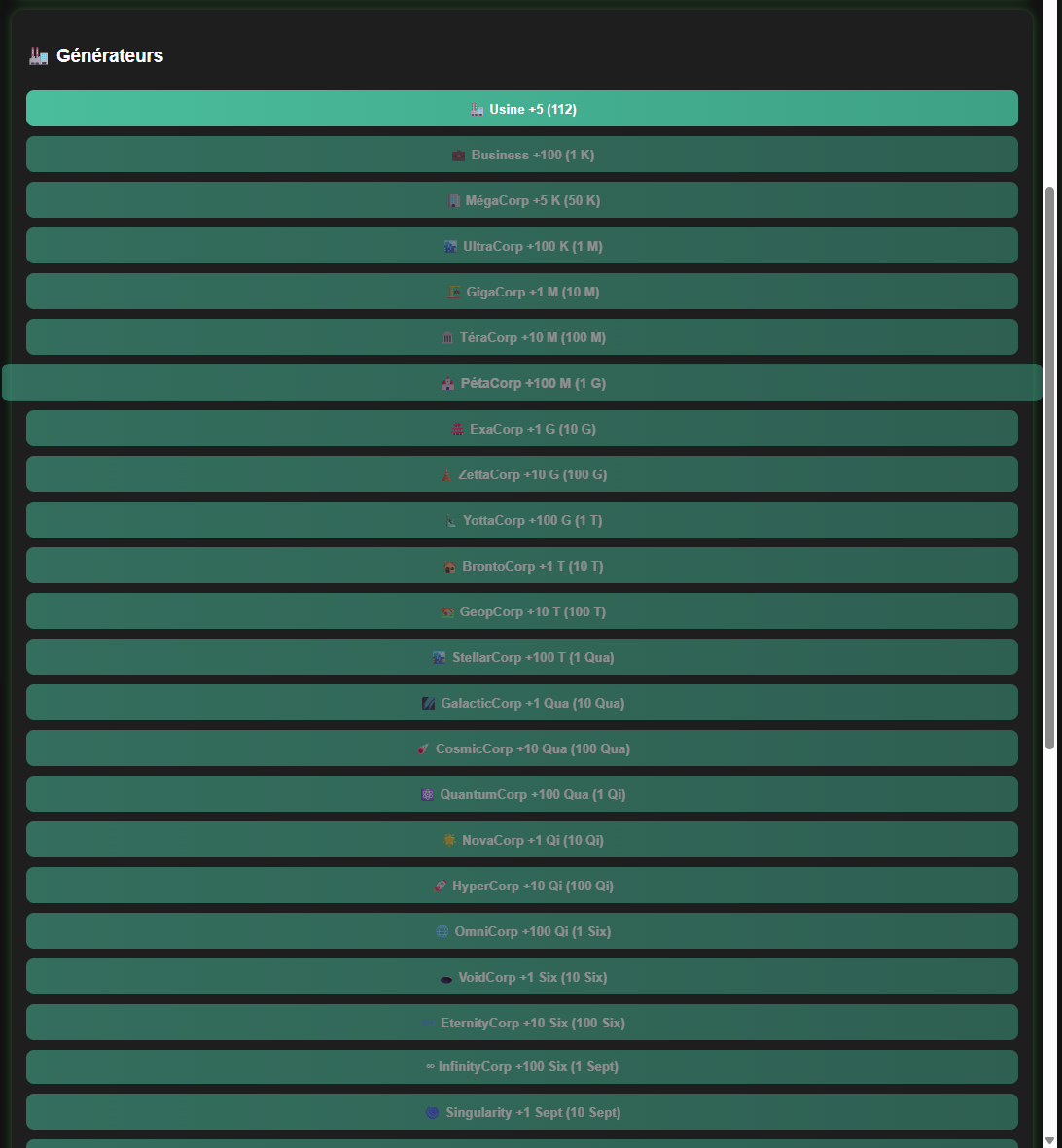 Click the factory to generate money, invest in automatic generators, unlock upgrades, and reach absurdly high economic levels.